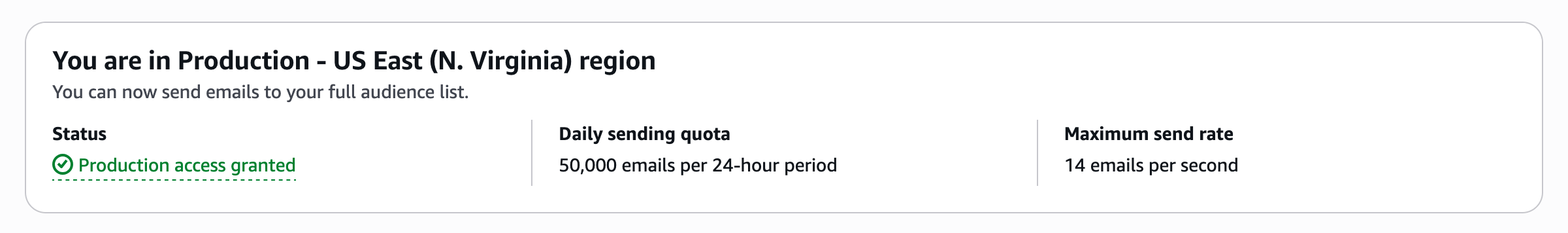 AWS recommends verifying your sending domain before requesting production access. This significantly speeds up the approval process. See our Domain Verification guide for instructions.